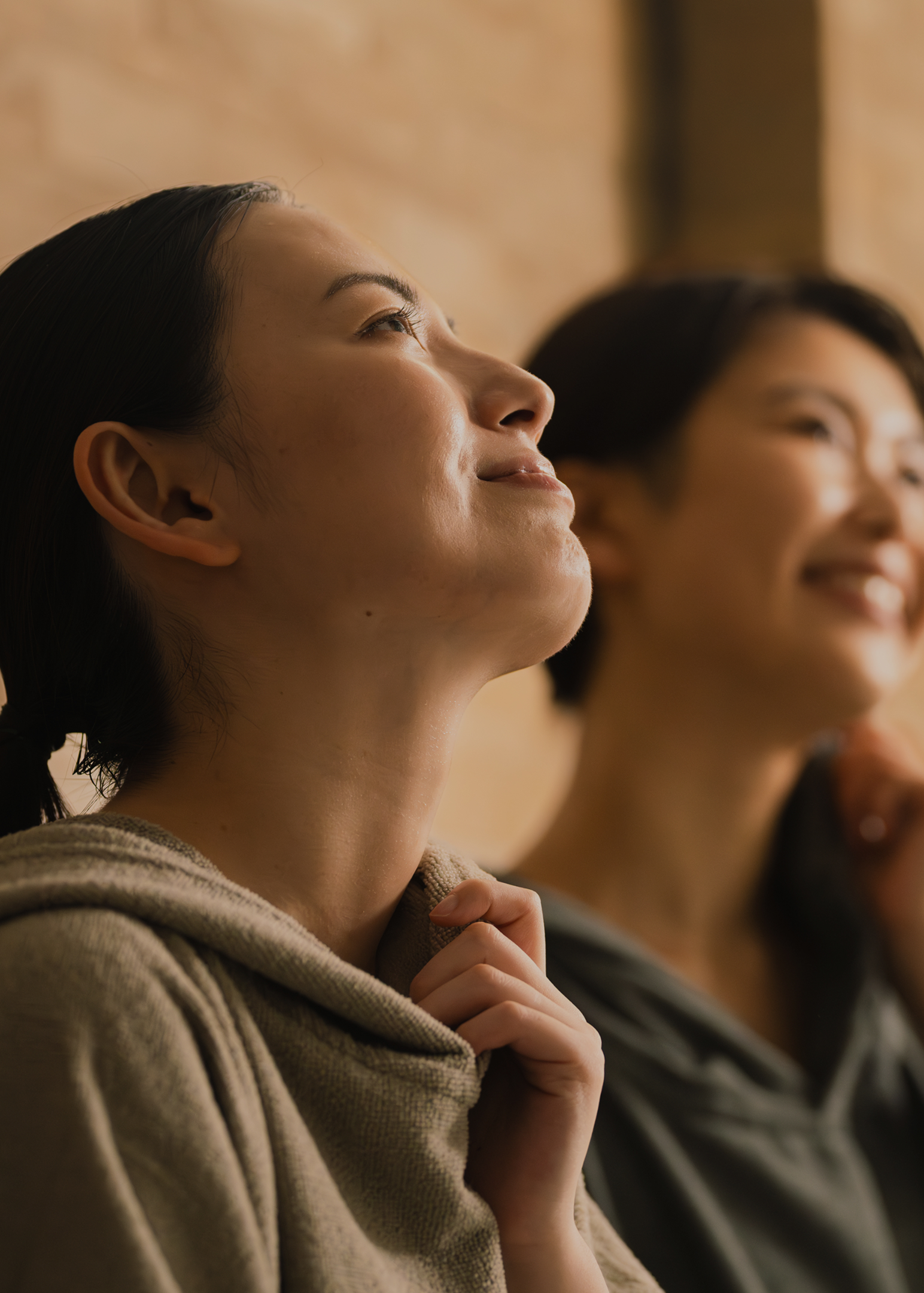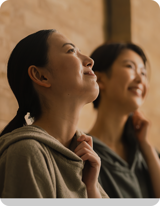 最初は無理せず、5~8分ほどを目安に。座る位置を変えながら、自分のペースで“じんわり”を楽しみましょう。息苦しいときは無理をせず、途中で出てもOKです。