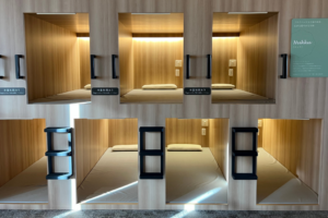 温泉やサウナの後はゆっくり過ごせる休憩スペースがフル完備。半個室のスタディスペースがあったり、泉ヶ岳を眺めながらお昼寝ができたり。岩盤浴エリアにはカプセルホテルのようなおこもり空間もあって、1日中ゴロゴロのんびりできちゃいます。