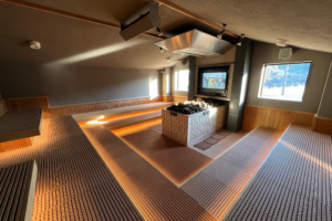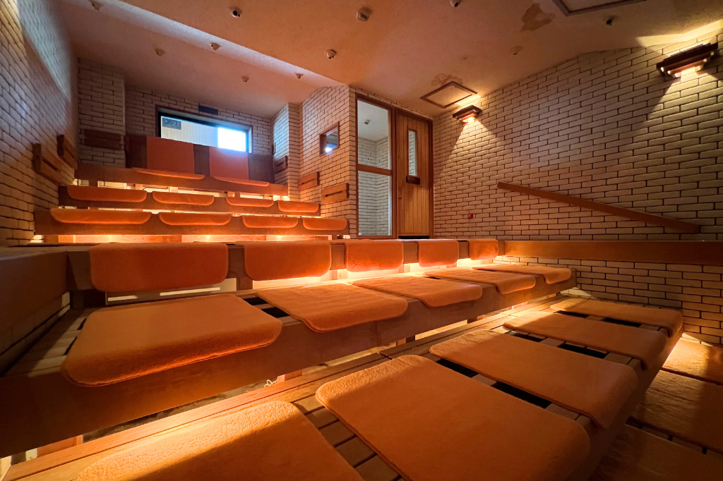 ここでは時間になると自動でロウリュが開始され、天井に設置されたファンによって、温められた熱波が部屋中の隅々まで行き渡る仕組みとなっています。