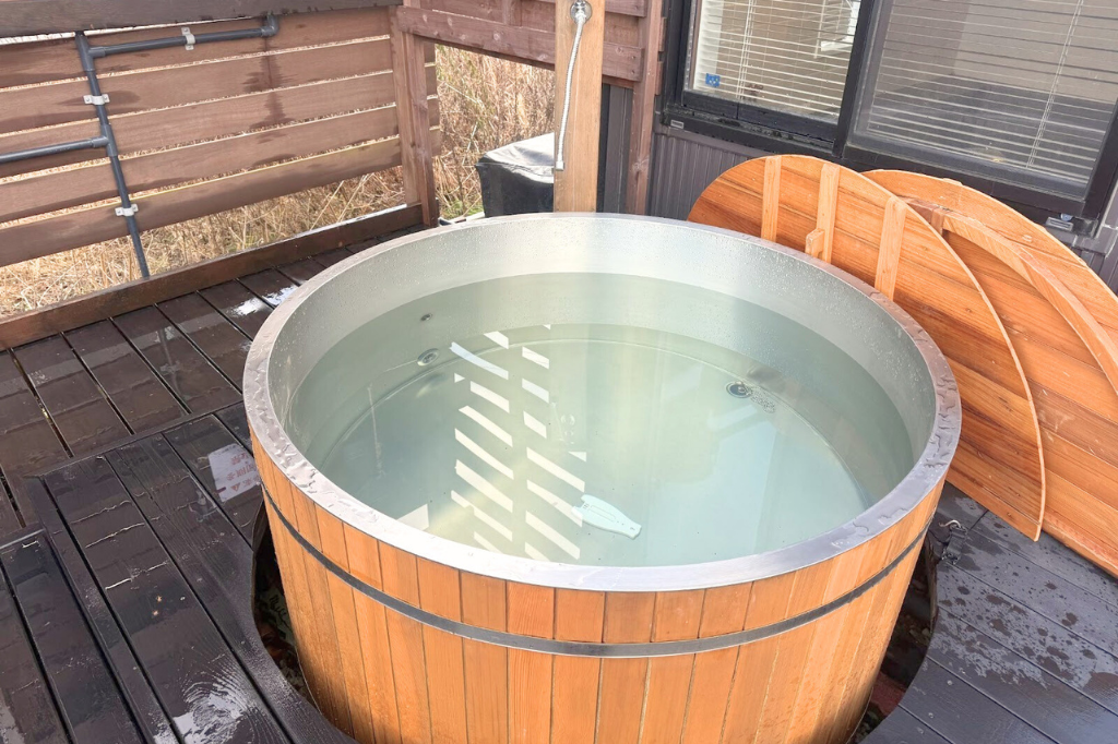 サウナの水風呂は肘から入るタイプはに太郎丸です。